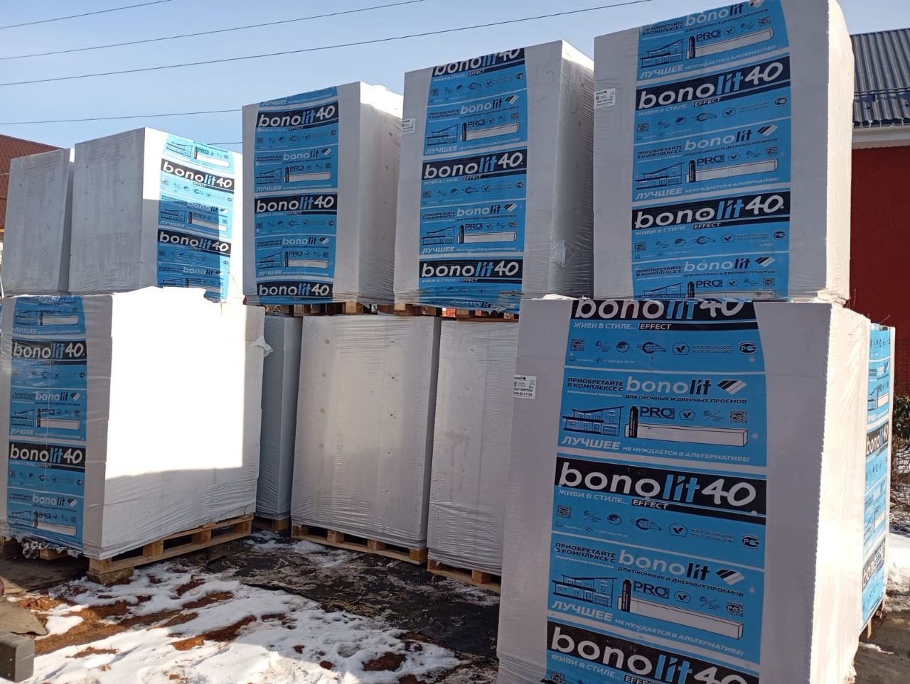 В одном поддоне обычно находится 60 блоков Бонолит D500. Это стандартная упаковка, которая облегчает транспортировку и хранение материала.